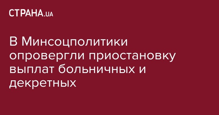 Минсоцполитики опровергло информацию о том, что Фонд социального страхования Украины прекратит выплаты больничных и пособий по беременности и родам. Об этом указывается в заявлении, обнародованном пресс-службой министерства.
