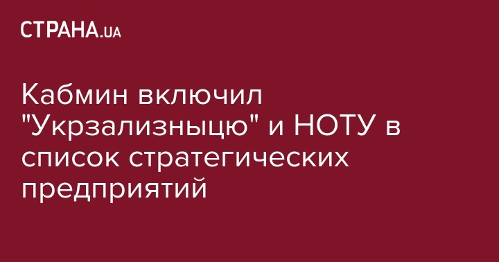 Между тем Кабмин исключил из перечня 39 объектов. К ним относятся 4 объекта, на базе которых в свое время была создана "Укрзализныця" и которые приостановлены как юридические лица. В министерстве напомнили, что законодательство не запрещает приватизировать предприятия, имеющие стратегическое значение.