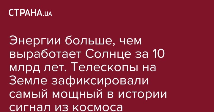 Энергии больше, чем выработает Солнце за 10 млрд лет. Телескопы на Земле зафиксировали самый мощный в истории сигнал из космоса