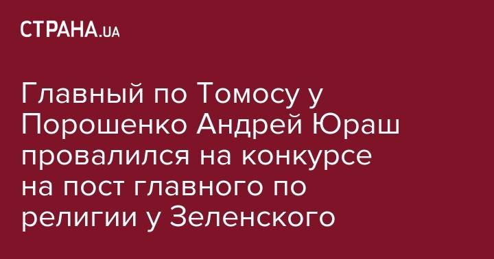 Главный по Томосу у Порошенко Андрей Юраш провалился на конкурсе на пост главного по религии у Зеленского