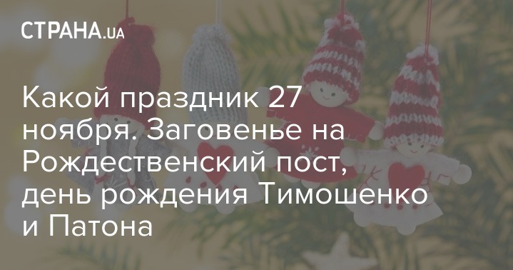 27 ноября в Украине отмечают Филипповки, когда на обед приглашали родственников, бедняков и вдов, чтобы угостить мясными блюдами. Православные и греко-католики будут заговляться перед Рождественским постом. Сегодня именины - у Александра, Алексея, Анны, Виктора, Григория, Дмитрия и Филиппа. День рождения отмечают Юлия Тимошенко и Борис Патон.