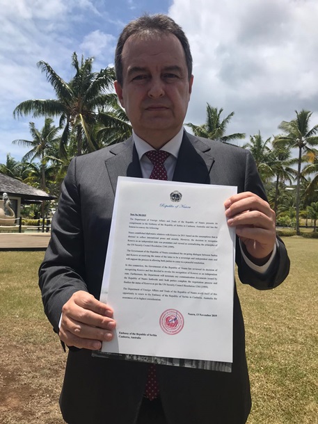 Власти Республики Науру, находящейся в Океании решили отозвать свое признание Косово. Они стали уже 17-й страной, которая это сделала. Об этом заявил министр иностранных дел Сербии Ивица Дачич, передает сербское издание РТС в пятницу, 22 ноября.