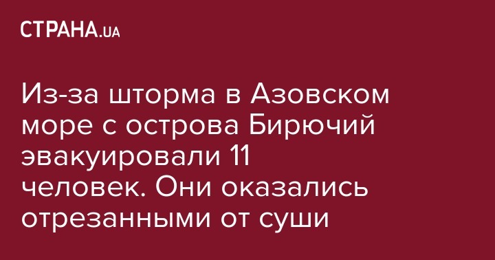 Вследствие непогоды на побережье Азовского моря спасатели эвакуировали 11 человек с острова Бирючий. Они доставлены в Кирилловку и довезены до автовокзала. Об этом сообщает пресс-служба ГСЧС Запорожской области.