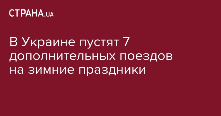 Сегодня, 23 ноября, в "Укрзализныце" приняли решение назначить 7 дополнительных поездов в период зимних праздников, а также продолжить маршрут 5 поездов. Об этом сообщает пресс-служба госпредприятия.