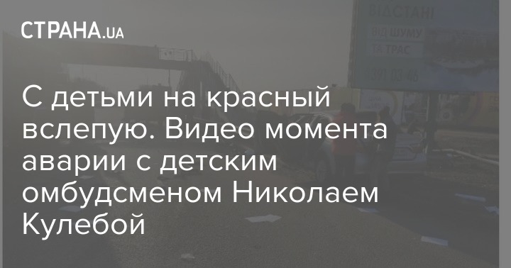 С детьми на красный вслепую. Видео момента аварии с детским омбудсменом Николаем Кулебой