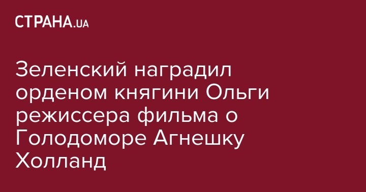 Режиссер фильма "Цена правды" о Голодоморе Агнешка Холланд была награждена орденом княгини Ольги. Об этом свидетельствует указ президента Украины Владимира Зеленского, размещенный на его официальном сайте.