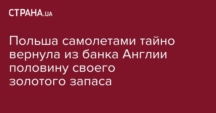 Национальный банк Польши (NBP) тайно привез в страну около 100 тонн золота из своих резервов, которые с 1939 года хранились в Банке Англии, что составляет почти половину запаса страны. Об этом пишет Rzeczpospolita.
