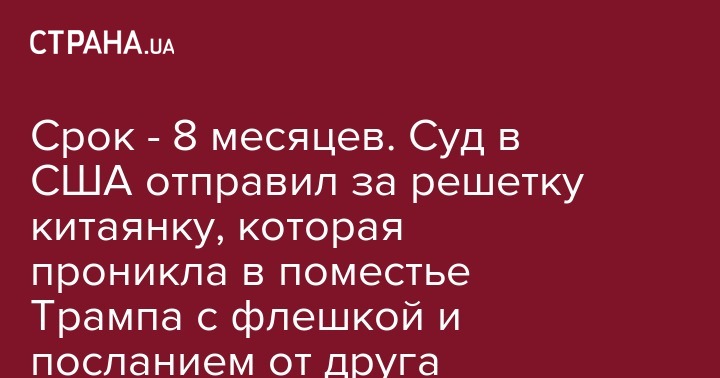 Срок - 8 месяцев. Суд в США отправил за решетку китаянку, которая проникла в поместье Трампа с флешкой и посланием от друга Чарльза
