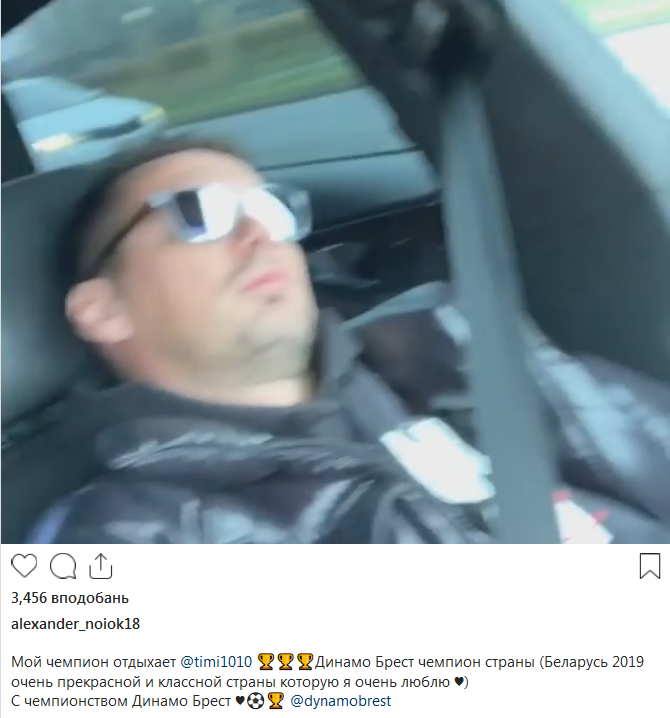 "Мой чемпион отдыхает. Динамо Брест чемпион страны (Беларусь 2019, очень прекрасной и классной страны которую я очень люблю). С чемпионством Динамо Брест", - написал наш легионер.