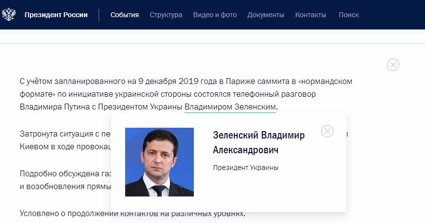 По запросу "Зеленский" на сайте президента России можно было отыскать лишь четыре новости, касающиеся телефонных разговоров между лидерами РФ и Украины. Первая из этих новостей опубликована на кремлевском сайте 11 июля 2019.