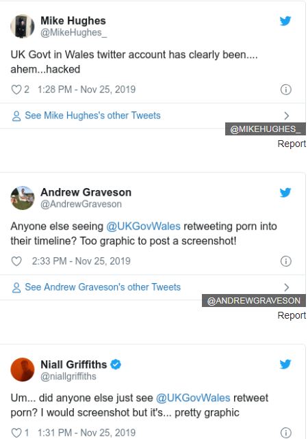 Два порнографических ролика появились на странице представительства британского правительства в Уэльсе в соцсети Twitter. Видео оказалось ретвитом с другого аккаунта, пишет BBC.