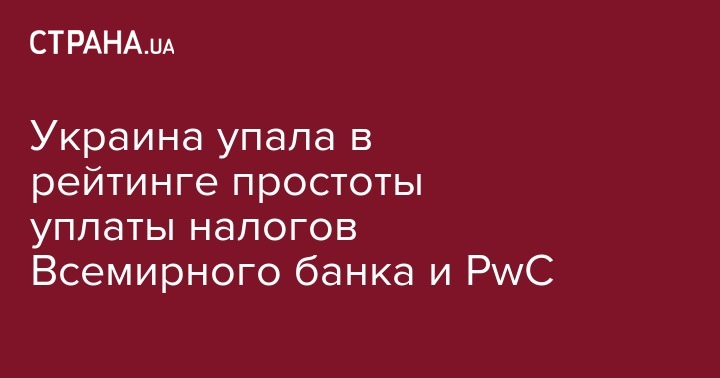 Украина упала до 65-го места в ежегодном рейтинге простоты уплаты налогов Paying Taxes 2020, который составляет Всемирный банк и аудиторская компания PricewaterhouseCoopers (PwC), пишет Интерфакс-Украина.
