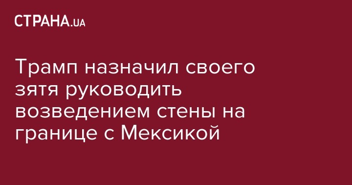 Президент США Дональд Трамп назначил своего зятя и советника Джареда Кушнера руководителем строительства стены на границе между США и Мексикой.