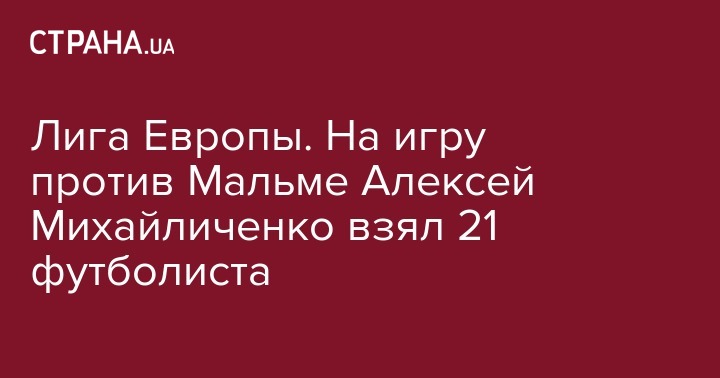 Лига Европы. На игру против Мальме Алексей Михайличенко взял 21 футболиста