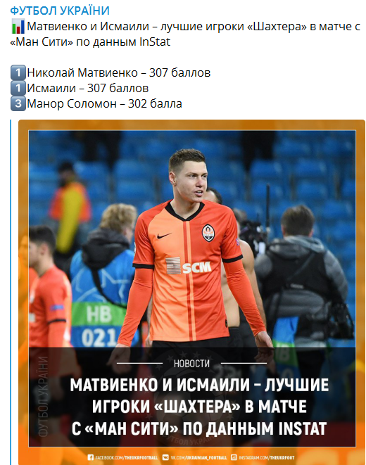 Ведущая спортивно-аналитическая компания мира InStat подвела итоги матча между Шахтером и Манчестер Сити и назвала лучших игроков.