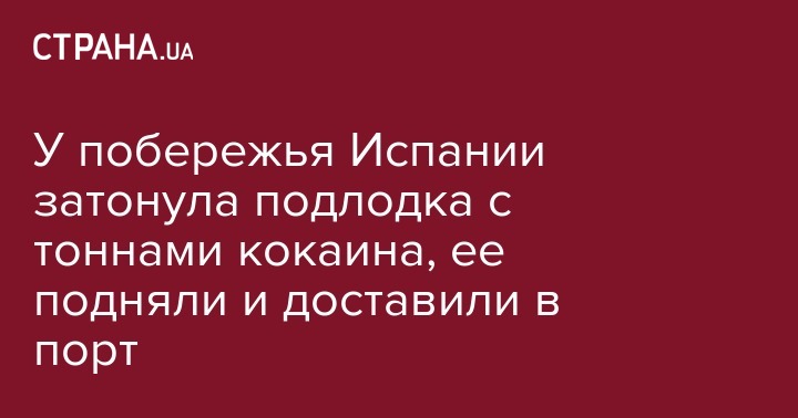 Сотрудники гражданской гвардии Испании и таможенной службы в среду приняли участие в поднятии затонувшей в воскресенье самодельной подводной лодки с грузом наркотиков и ее доставке в порт города Альдан в Галисии.