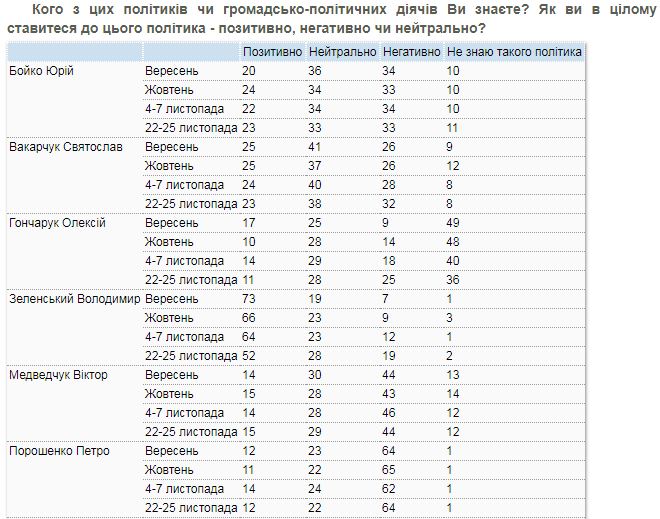 Как свидетельствуют данные опроса Киевского международного института социологии, если в начале сентября к нему демонстрировало позитивное отношение 72% опрошенных, в октябре - 66%, в начале ноября - 64%, то в конце ноября уже всего 52%.