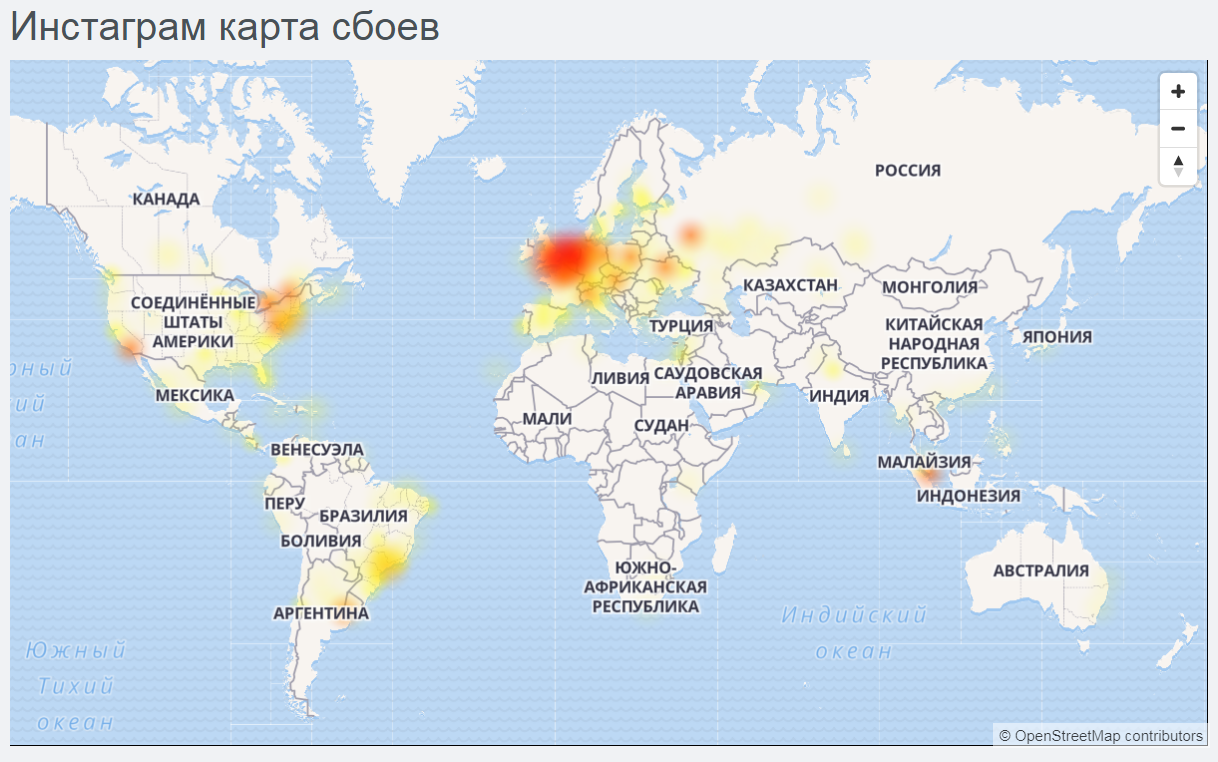 В работе популярного приложения для публикации фотографий и видео Instagram, с которым неделю назад уже были проблемы, произошел сбой: платформа работает с перебоями в США, Европе и Южной Америке. Об этом говорит карта сбоев на портале Downdetector.