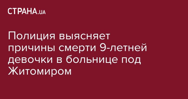 Правоохранители Житомирской области начали проверку по факту смерти 9-летней девочки в больнице.