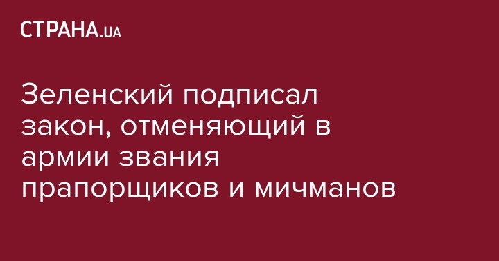 Закон о введении в украинской армии новых воинских званий сержантского и старшинского состава № 205-IX подписал президент Украины Владимир Зеленский, сообщается на сайте Верховной Рады.