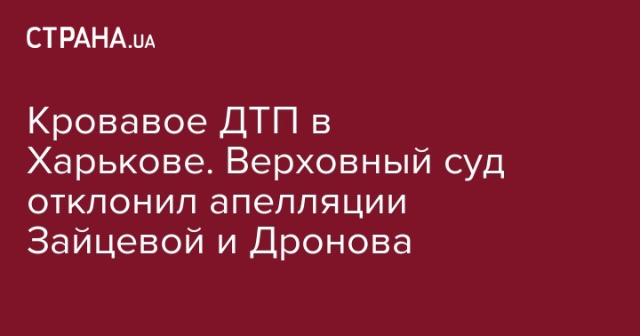 Верховный суд не принял к рассмотрению апелляции осужденных по делу о ДТП на Сумской в Харькове Геннадия Дронова и Елены Зайцевой. Об этом на своей странице в Facebook сообщила журналистка Татьяна Доцяк.