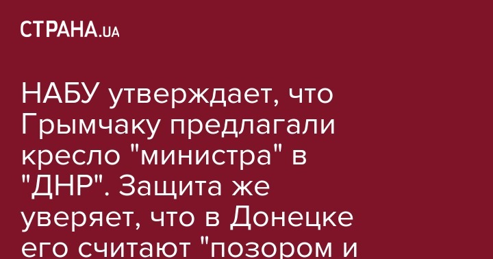 Детективы НАБУ ходотайствовали о продлении меры пресечения экс-заместителю министра по вопросам временно оккупированных территорий Юрию Грымчаку, поскольку сепаратисты якобы предлагали ему должность "министра" в "ДНР". Об этом свидетельствует текст постановления Апелляционной палаты Высшего антикорсуда.