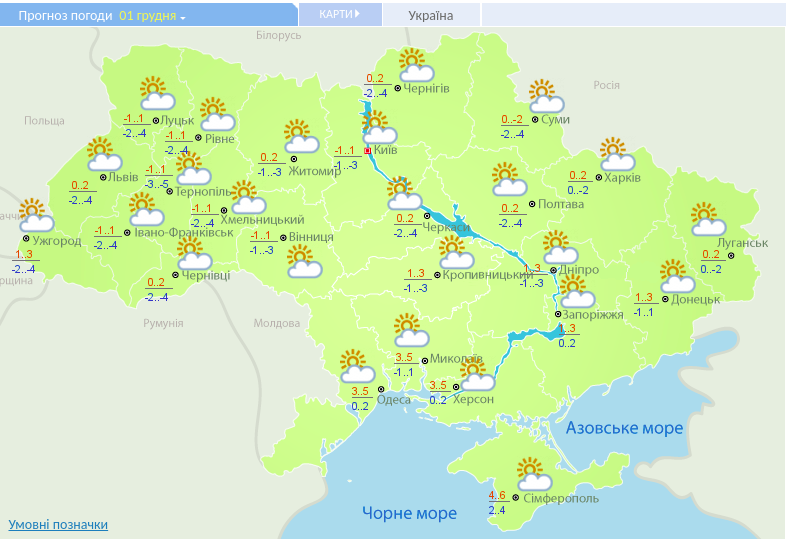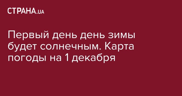 Погода в первый день зимы - 1 декабря в Украине будет относительно теплой. По всей территории страны будет солнечно, без осадков, ожидаются небольшие морозы - до -3 ночью. Об этом сообщает "Укргидрометцентр".