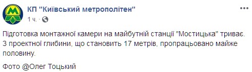 В Киевском метрополитене показали, как ведется строительство станции метро "Мостицкая" на Виноградаре. Соответствующий пост был размещен в Facebook.
