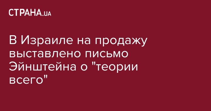 В Израиле на продажу выставлено письмо Эйнштейна о "теории всего"