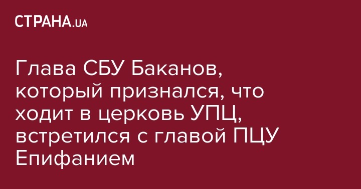 Глава Православной церкви Украины (ПЦУ) Епифаний встретился с главой Службы безопасности Украины (СБУ) Иваном Бакановым, который ранее заявил, что ходит в храм УПЦ Московского патриархата и с осуждением говорил о вмешательстве государства в церковные дела при Порошенко.