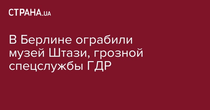 В столице Германии Берлине, откуда недавно не могли вылететь украинцы из-за паспортного контроля, обворовали музей, посвященный работе тайной полиции бывшей Германской Демократической Республики - Штази. Об этом сообщает AFP.