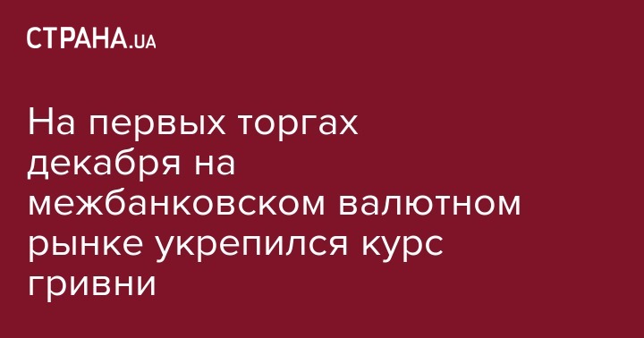На первых торгах декабря на межбанковском валютном рынке укрепился курс гривни