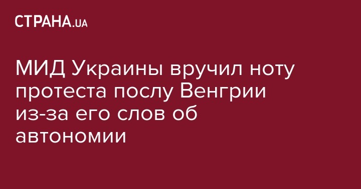 "2 декабря в МИД Украины был приглашен посол Венгрии на Украине Иштван Ийдярто, которому - в связи с интервью от 28 ноября - было сказано о неприемлемости его заявлений об автономии венгерского национального меньшинства на Украине и блокировки венгерской стороной деятельности комиссии Украина - НАТО. Вручена нота протеста", - говорится в сообщении, опубликованном на сайте МИД Украины.