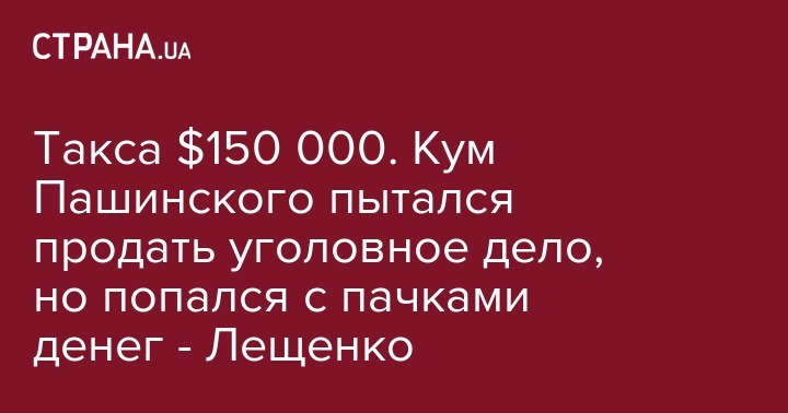 Такса $150 000. Кум Пашинского пытался продать уголовное дело, но попался с пачками денег - Лещенко