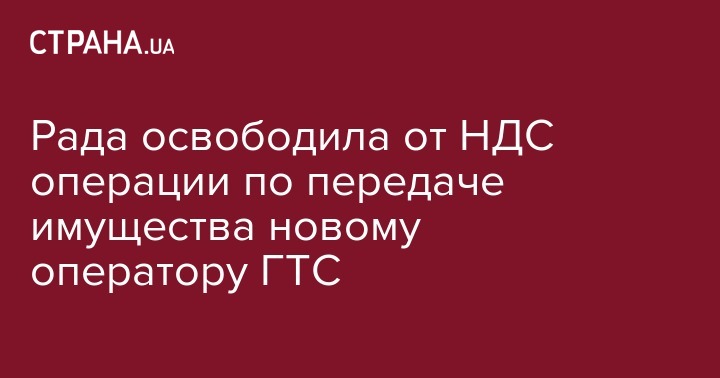 Рада освободила от НДС операции по передаче имущества новому оператору ГТС