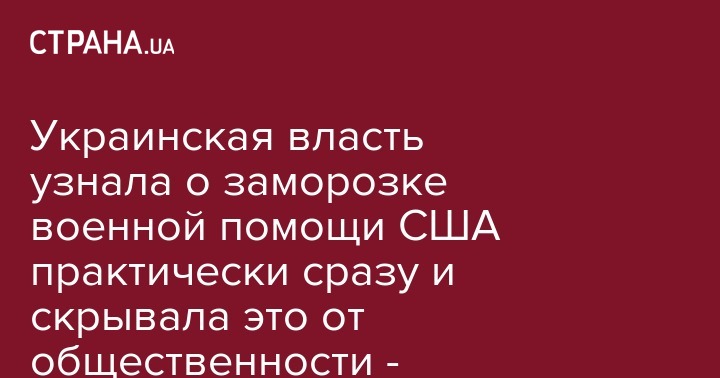 Украинская власть узнала о заморозке военной помощи США практически сразу и скрывала это от общественности - Зеркаль
