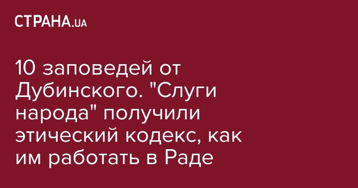Документ, который разработал нардеп Александр Дубинский, называется "Кодекс этики народного депутата Украины - члена депутатской фракции политической партии "Слуга народа". Об этом передает theБабель.