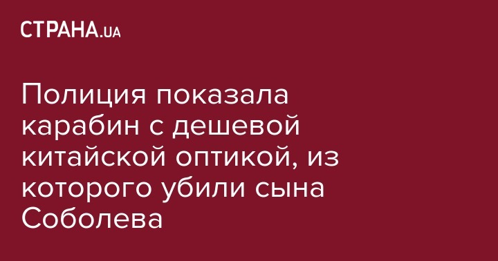 Выстрел, который вечером 1 декабря унес жизнь трехлетнего сына депутата Киевского облсовета и бизнесмена Вячеслава Соболева был произведен, вероятно, из карабина на американской платформе AR калибра 7,62 мм с недорогим китайским оптическим прицелом XD Precision. Об этом на своей странице в соцсети написал глава департамента коммуникаций МВД Украины Артем Шевченко.