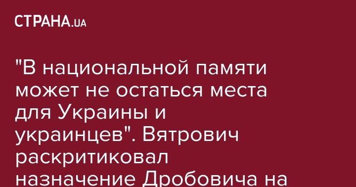 "В национальной памяти может не остаться места для Украины и украинцев". Вятрович раскритиковал назначение Дробовича на должность главы института Нацпамяти