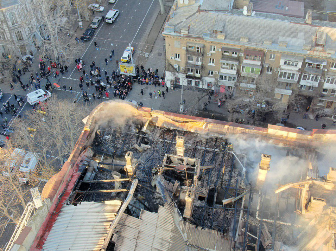 Кроме того, существует вероятность обрушения конструкций. Судя по последним фото, крыша здания сгорела полностью. Также спасатели не могут найти как минимум четырех человек, находившихся в здании в начале возгорания.