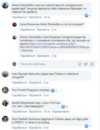 Заместитель главреда журнала Cosmopolitan Ukraine Евгения Плихина высмеяла в Facebook похороны полковника ЦСО "Альфа" СБУ, 37-летнего снайпера Дениса Волочаевана, который погиб на Донбассе, выполняя боевую задачу.