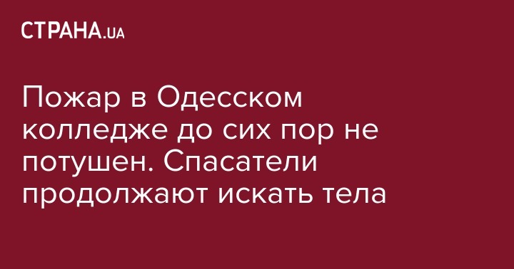 Как сообщалось, в 10:12 среды в Одесском колледже экономики, права и гостинично-ресторанного бизнеса (г.Одесса) на 3 этаже 6-ти этажного учебного корпуса возник пожар, площадь которого достигла 4 тыс кв.м и в 14:18 был локализован. В результате пожара пострадали и были госпитализированы 22 человека, 17-летняя студентка впоследствии скончалась. По данным СМИ, двое пострадавших находятся в тяжелом состоянии. По факту пожара открыто уголовное производство по ч.2 ст.270 (нарушение установленных законодательством требований пожарной безопасности) Уголовного кодекса Украины.