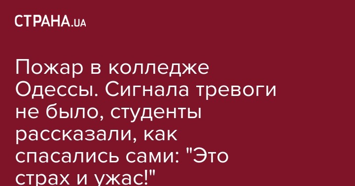 Пожар в колледже Одессы. Сигнала тревоги не было, студенты рассказали, как cпасались сами: "Это страх и ужас!"