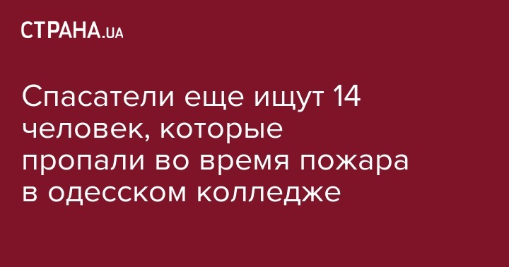 По состоянию на утро 5 декабря в результате пожара в Одесском колледже пропавшими числятся 14 человек. Об этом сообщает пресс-служба ГСЧС Украины.