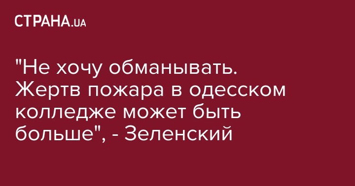 "Не хочу обманывать. Жертв пожара в одесском колледже может быть больше", - Зеленский