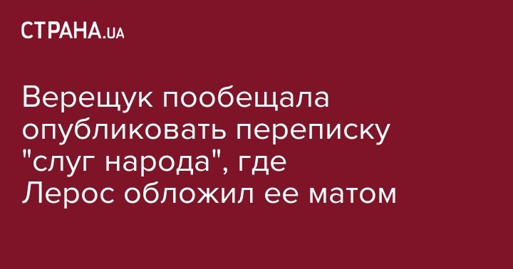"Если Гео говорит, что никаких обидных слов в отношении меня произнесено не было и он не виноват, то я могу показать эту переписку", - заявила она. Перед этим Лерос заявил "Стране", что ему не за что извиняться перед Верещук и она "пусть покажет переписку и тогда мы посмотрим, кто будет извиняться".