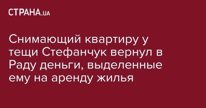 Ранее появилась информация о том, что первый вице-спикер Верховной Рады Руслан Стефанчук (фракция "Слуга народа") арендовал квартиру у своей тещи и получает компенсацию из бюджета "за жилье иногородним.