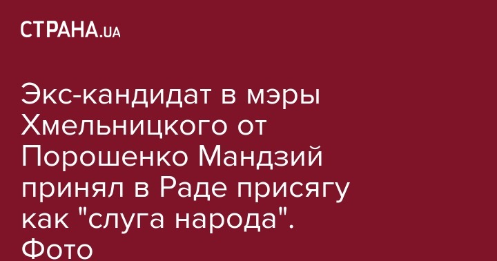 Экс-кандидат в мэры Хмельницкого от Порошенко Мандзий принял в Раде присягу как "слуга народа". Фото