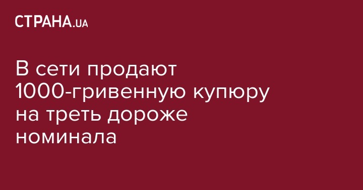 В сети продают 1000-гривенную купюру на треть дороже номинала