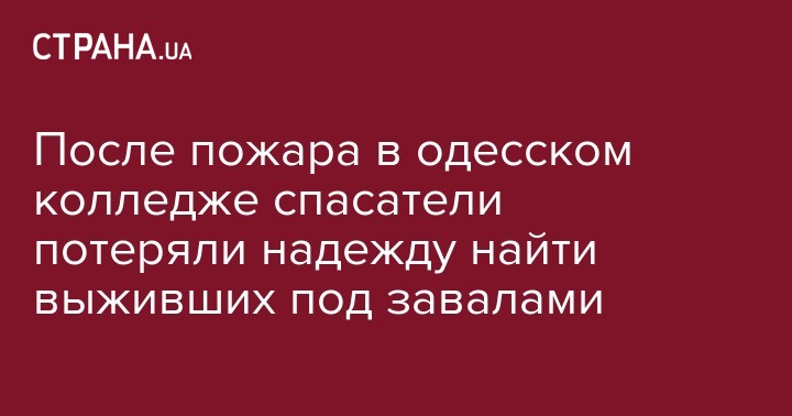 Сотрудники спасательной службы, которые разбираются завалы и ищут пропавших в результате пожара в Одесском колледже экономики, права и гостинично-ресторанного бизнеса, больше не надеются найти выживших.
